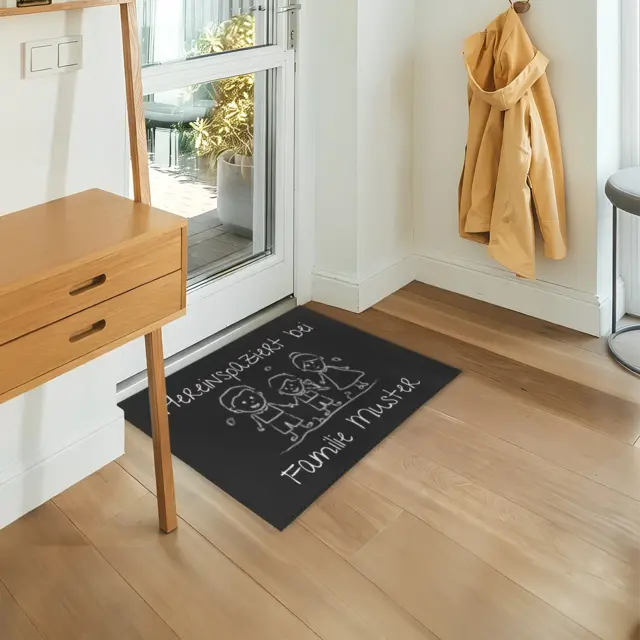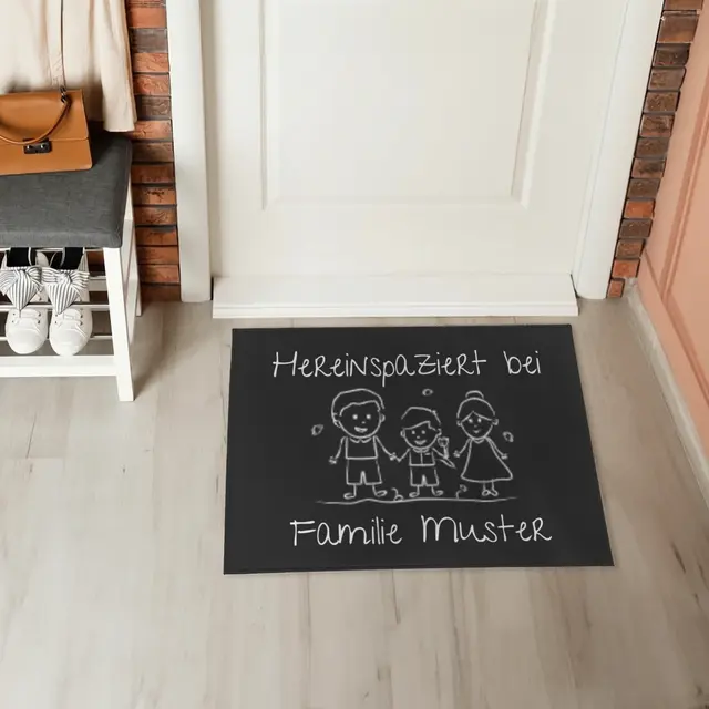 Die robuste Oberfläche und rutschfeste Rückseite sorgen dafür, dass Ihre Matte nicht nur hübsch aussieht, sondern auch praktisch ist – perfekt für den täglichen Einsatz. Ob für Familie, Freund:innen oder als Einzugsgeschenk, eine individuell gestaltete Fußmatte macht jeden Eingangsbereich einladender und zaubert garantiert ein Lächeln auf jedes Gesicht.